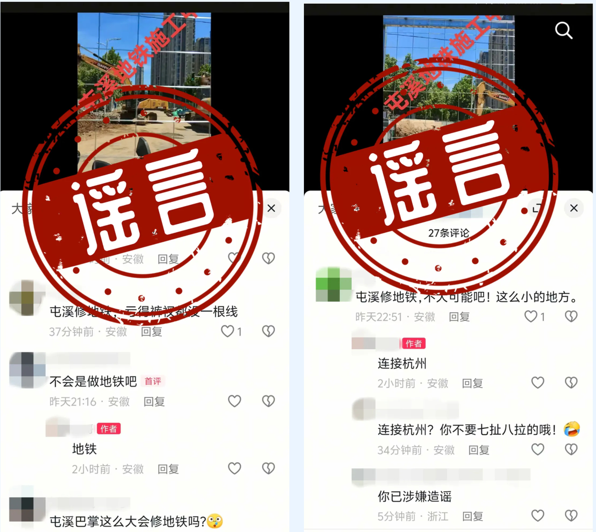 8月27日19时许,屯溪公安分局网安大队在工作中发现,辖区一男子在某视频平台上发布了“屯溪地铁施工中”的视频并在评论区多次跟评称该地铁连接杭州。