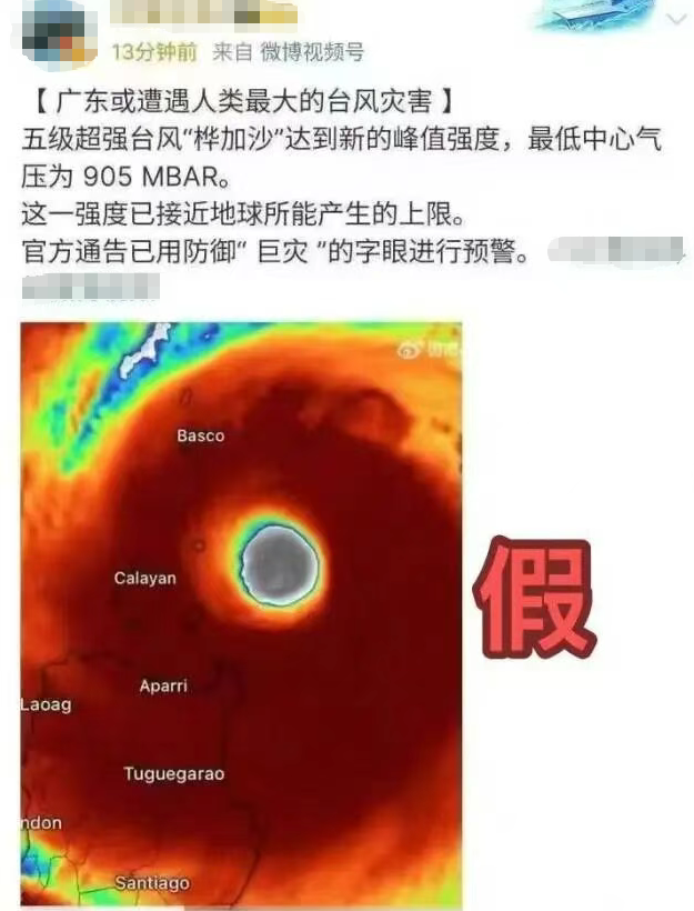 9月22日,自媒体“空警世界”发微博称,“广东或遭遇人类最大的台风灾害”,其在微博中提到,“超强台风‘桦加沙’达到新的峰值强度,最低中心气压为905MBAR。这一强度已接近地球所能产生的上限。”
