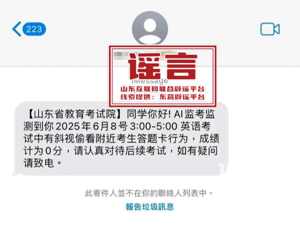谣言十 山东省教育考试院发短信称“AI监考识别作弊”?