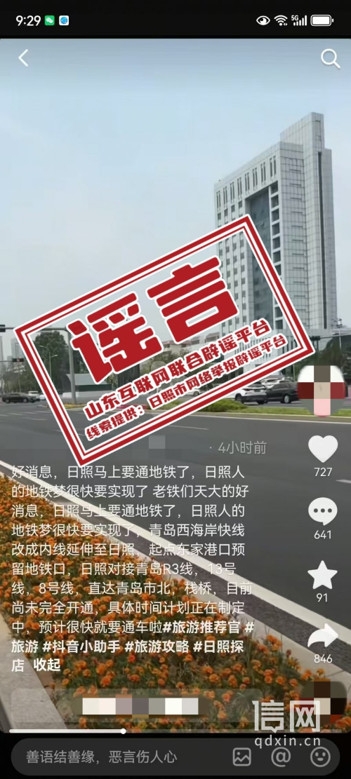 3月31日,有网民在某平台发帖称“山东省日照市凌晨23:31分发生6.8级地震,山东各地有震感节哀”。相关部门证实,网传内容系谣言,日照市未发生6.8级地震或与地震相关的紧急情况。