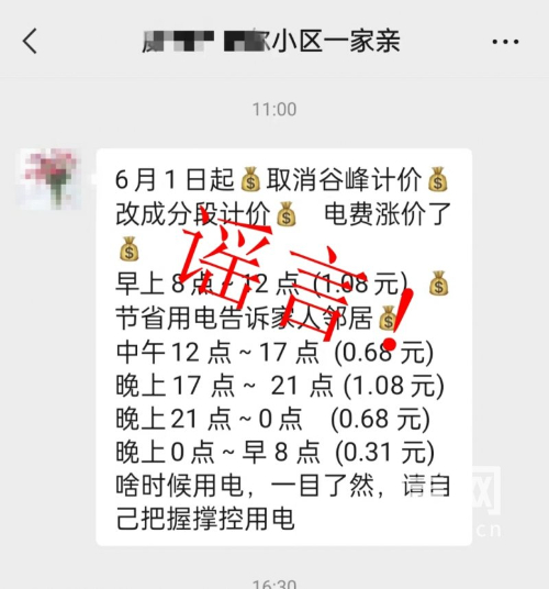 五月份,一则“青岛电费涨价”的消息传播。该消息称“6月1日起,青岛居民用电将执行新的标准,取消谷峰计价改成分时段计价,并且电费要涨。”国家电网工作人员表示,青岛居民用电仍执行现行目录销售电价,未出现涨价情况。早在2023年11月,青岛市网上辟谣平台就针对“12月1日青岛市电费涨价”的同类谣言进行过澄清。