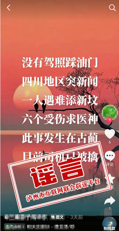 泸州市互联网联合辟谣平台提醒广大网友,网络不是法外之地。请自觉遵守相关法律法规,不造谣、不信谣、不传谣,共同营造清朗有序的网络环境。