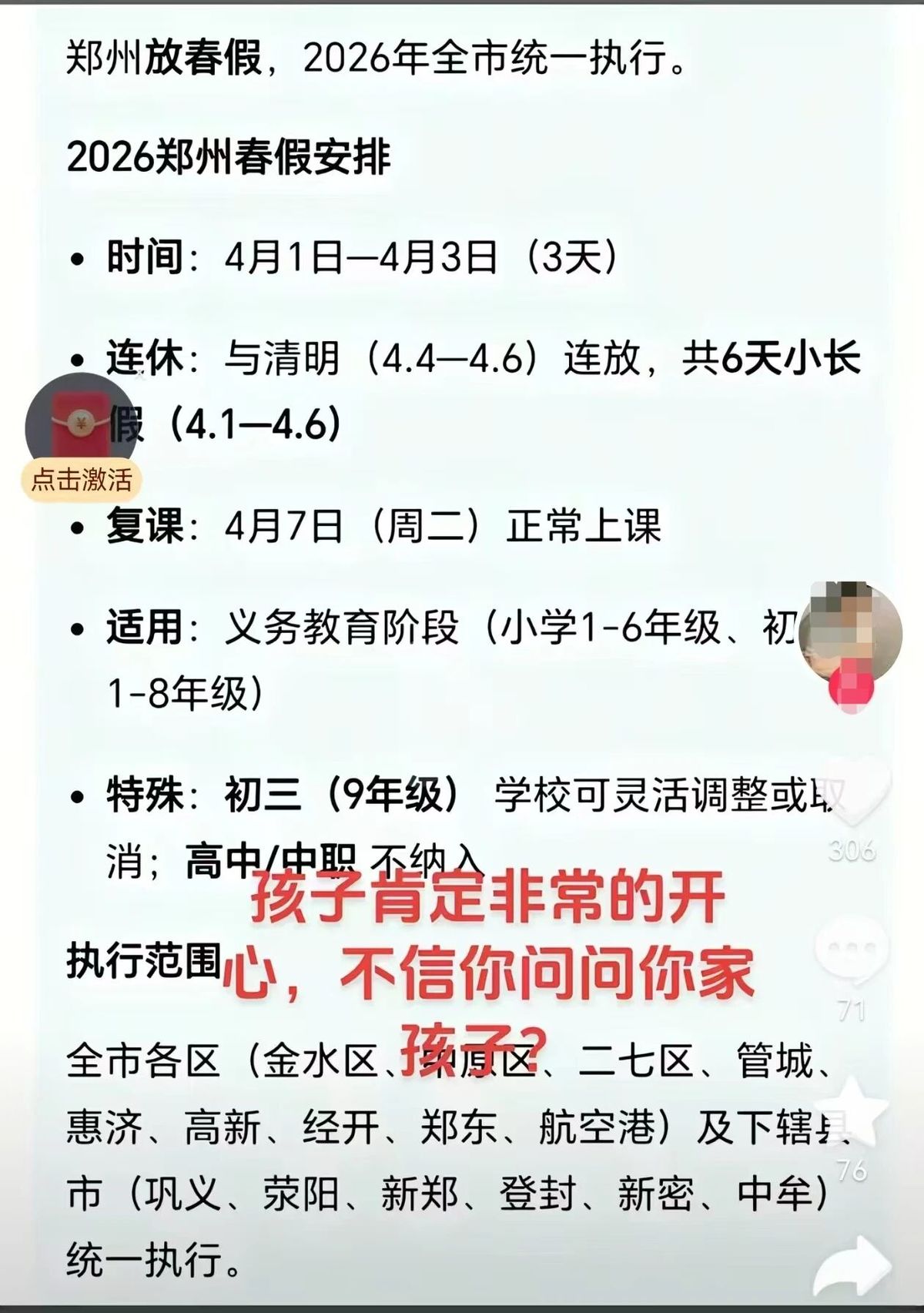 近日,多个网络账号发布信息称“郑州市2026年有春假”“河南商丘2026年有春假,官方已明确”,引发网民关注。