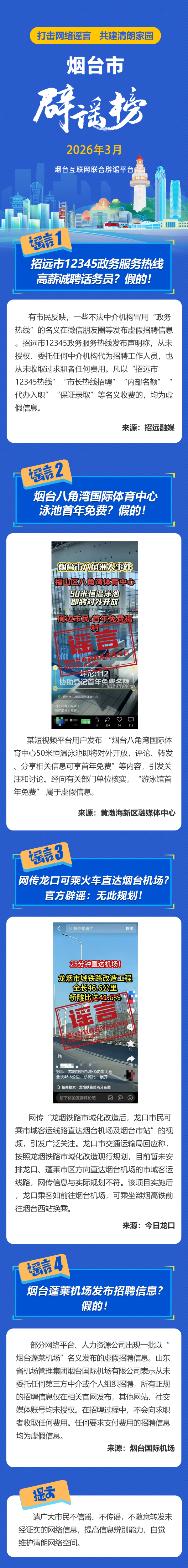 烟台互联网联合辟谣平台2026年3月辟谣榜单