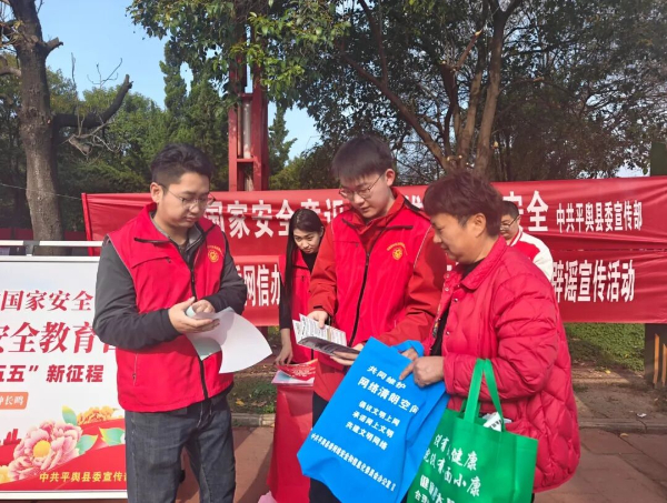 驻马店市平舆县委网信办在舆新广场设立网络辟谣宣传主阵地,采用“固定宣传点位+流动宣讲小队”相结合的模式,通过悬挂主题横幅、摆放图文展板、设立咨询窗口等形式,打造直观易懂的网络安全科普平台。