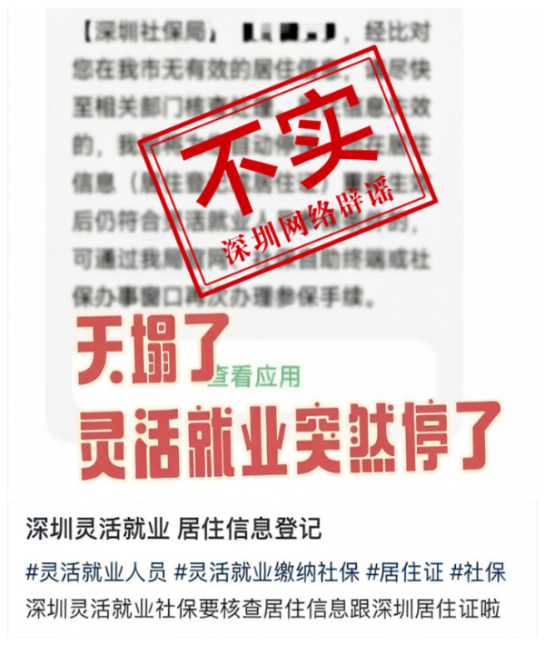 事情的起因是,深圳社保向部分灵活就业参保人发了一条提醒短信,短信中提到“经比对您在我市无有效的居住信息,请尽快至相关部门核查处理。居住信息失效的,我局将为您自动停保”,结果被一些博眼球的自媒体搞“标题党”炒作,致使诸多参保人员因不实信息受到误导,陷入担忧与疑虑。
